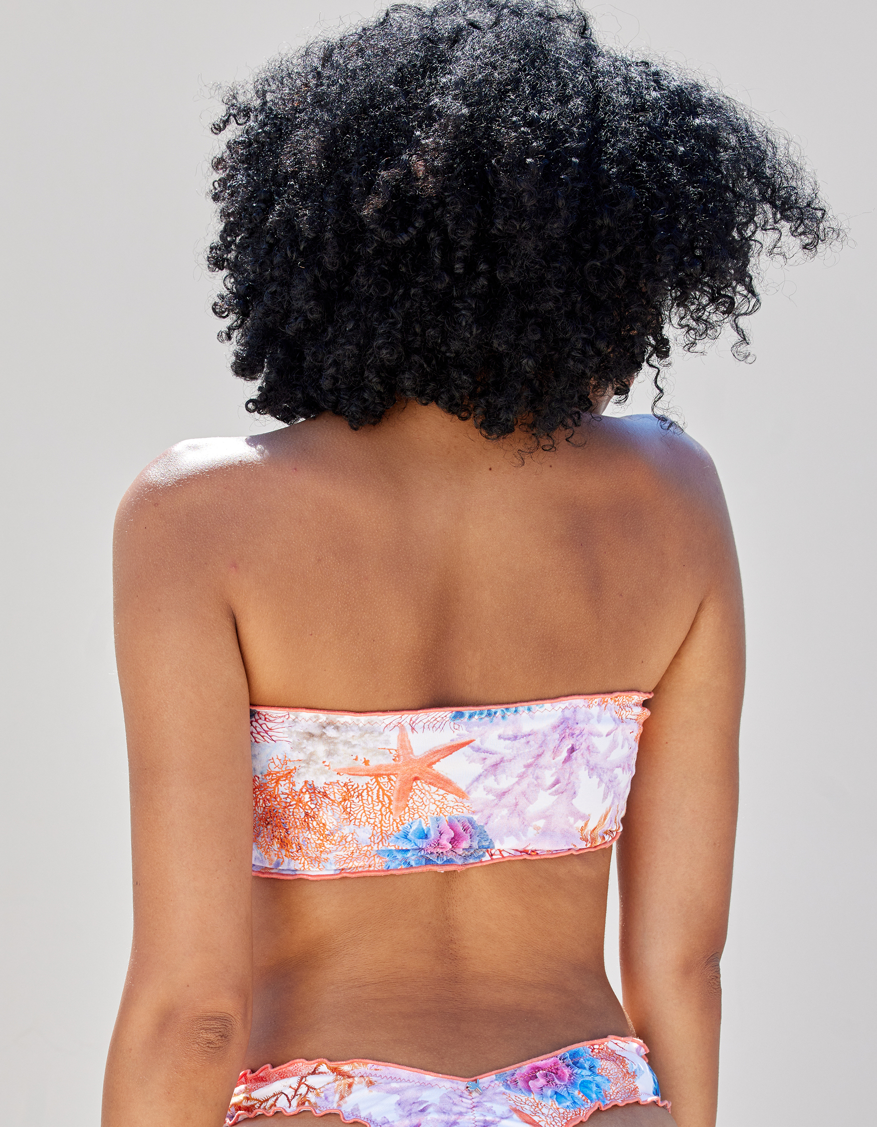 Top bandeau estampado coral 100% algodón elástico. Dos posiciones. Forro 100% polyamida.